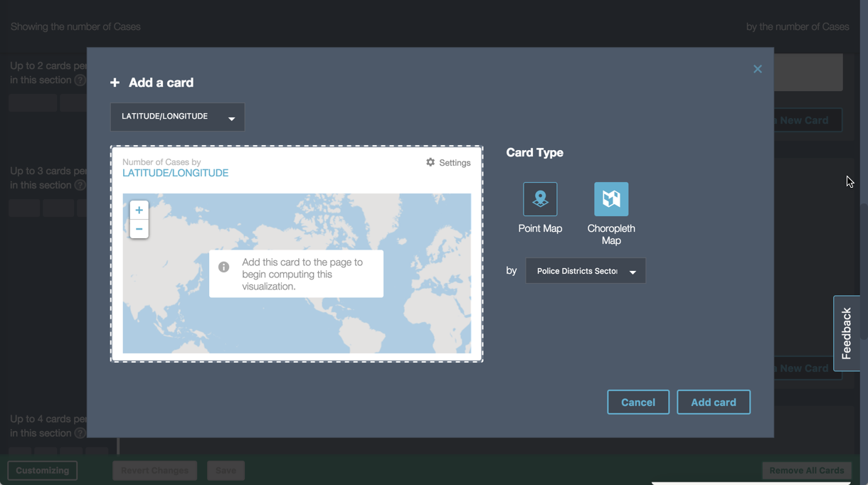 *Remember* Map cards, including this new Boundary, only show on Data Lens pages that have a geocoded location column in their source dataset. If the dataset does not have a location column, you will not see the option to create a map of the data in Data Lens.